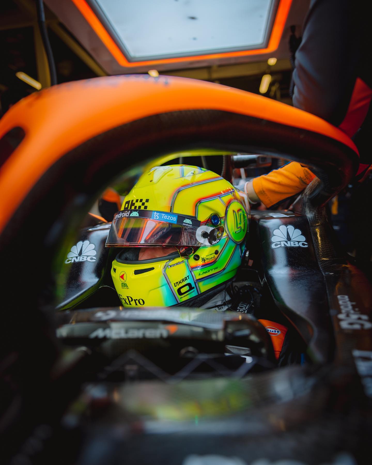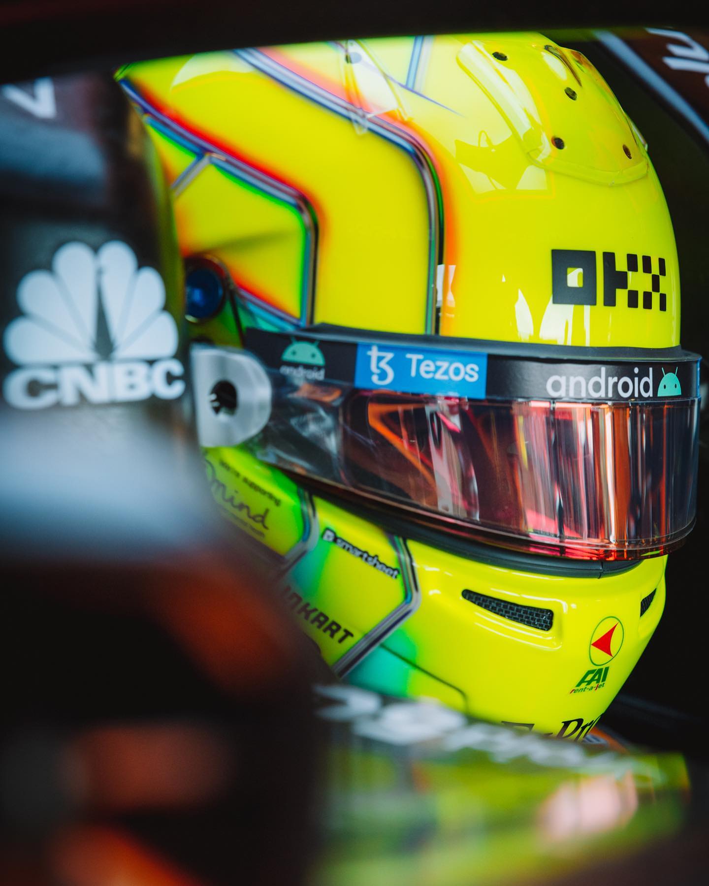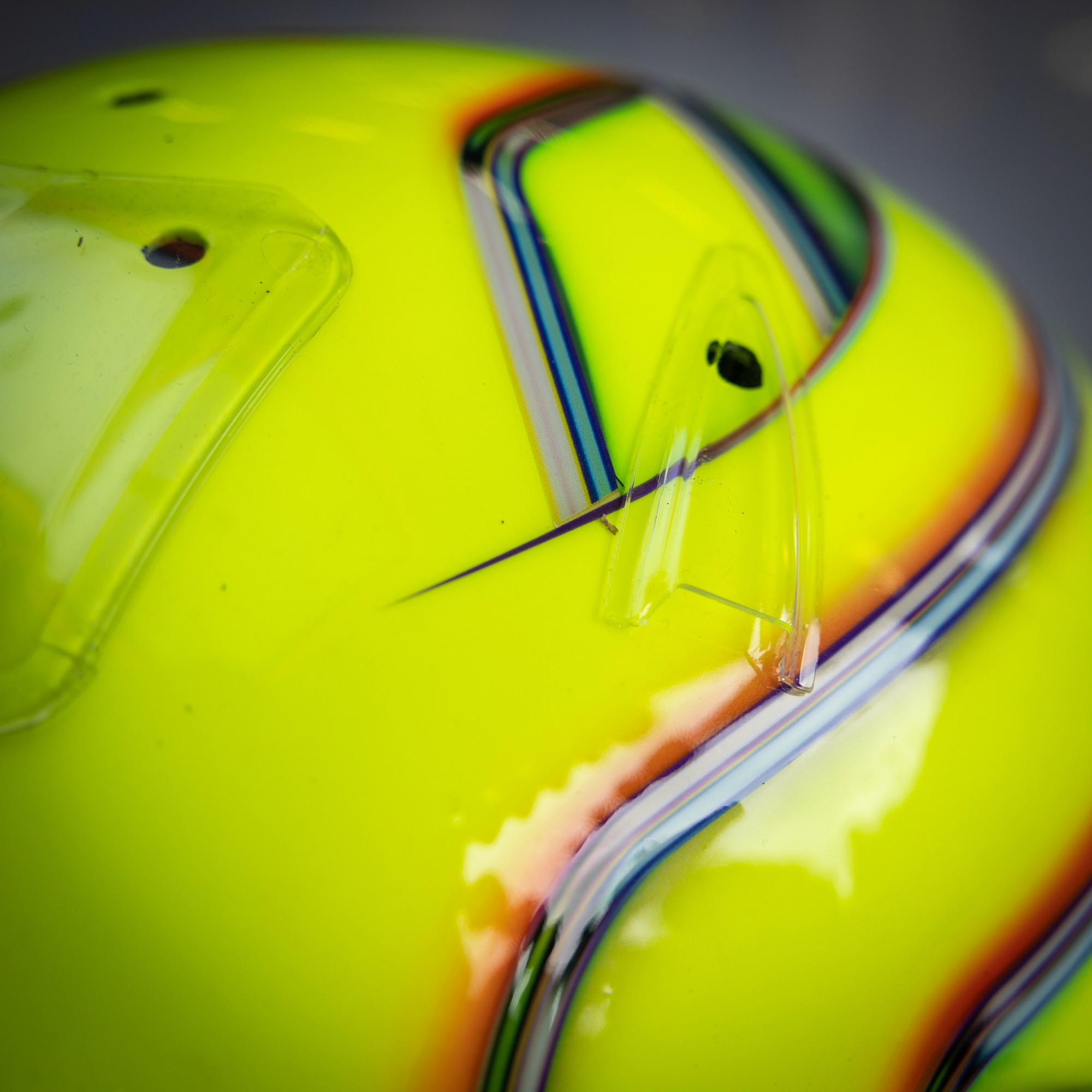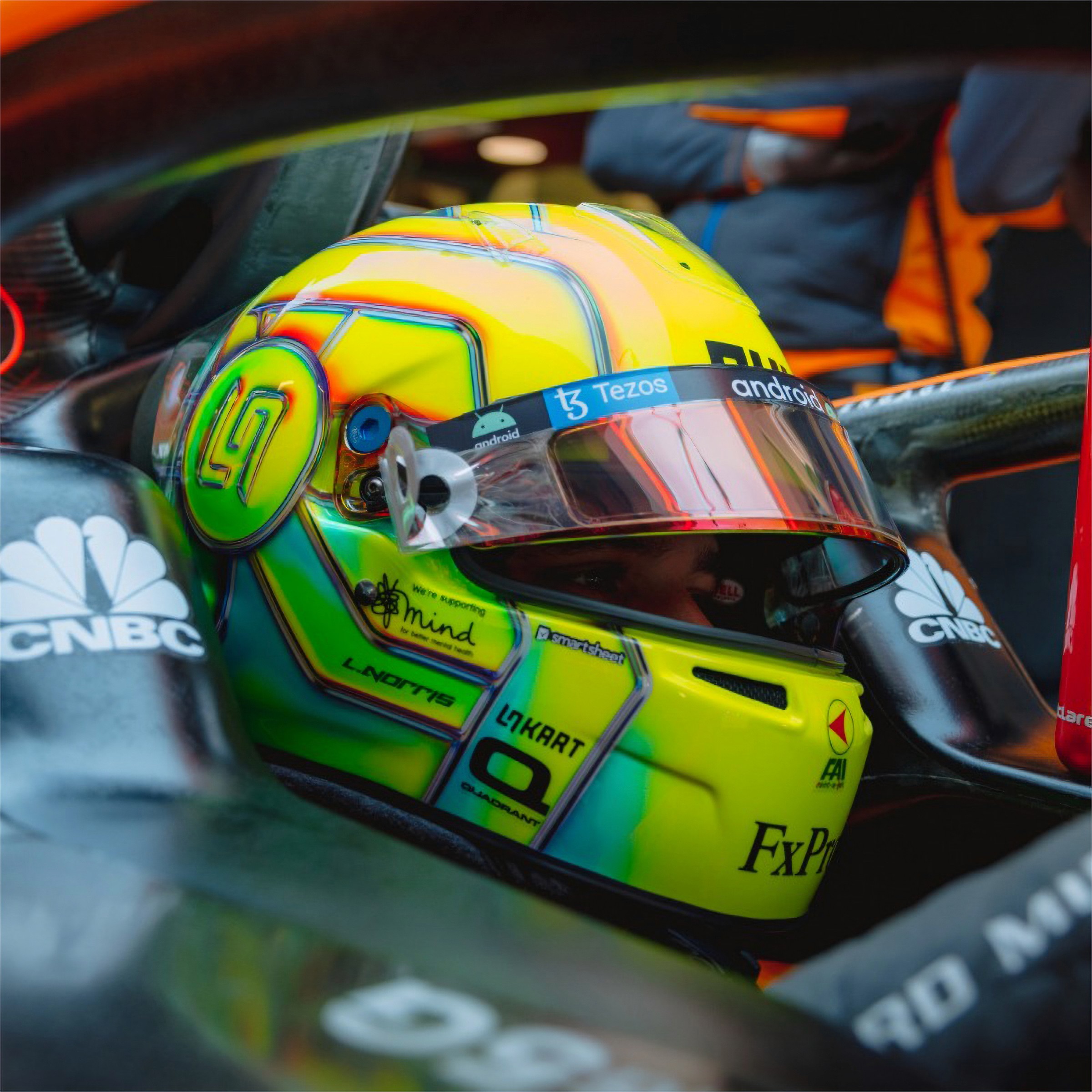 In close collaboration with the motorsport agency wearegrip, a special helmet design for F1 driver Lando Norris has been created for the 2022 British Grand Prix at Silverstone. The basic shape picks up the standard helmet design and the neon green as the driver's brand colour in a vivid chrome style. This edition is called "Liquid Neon Metal". In addition to the unique original helmet, mini helmets in 1:2 scale are also available for fans and followers.